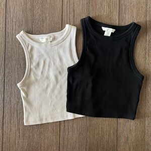 Essential black and white ribbed tee from H&M. Versatile and chic. Both extra small.