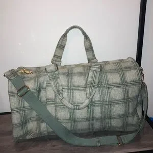 Luxury luxurious wool travel duffle bag fall winter spring summer cute fun pattern gingham plaid Buffalo checkered ski trip resort travel vacation staycation sleepover weekend trip tweed stylish trendy trending trends classic unisex women’s duffel bag men’s duffel bag Christmas holidays trip getaway duffle green plaid duffel bag preppy customizable bag Valentine’s Day