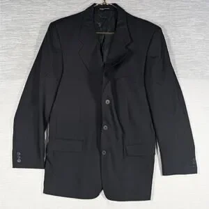 Yves Saint Laurent YSL Suit Blazer 44R Black Worsted Wool Made in Canada VTG