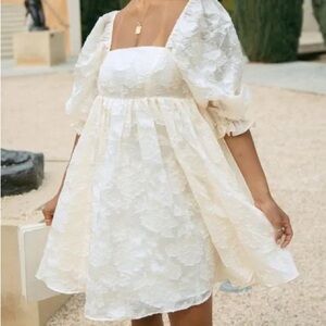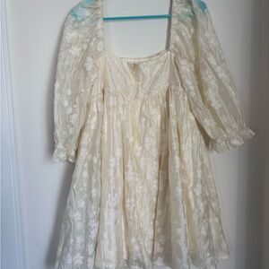 Honey Cream Floral Embroidered Babydoll Spring Dress Medium Fairytale Dreamy