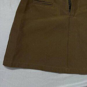 Classic brown mini skirt with back pockets and zipper closure. Simple and versatile style. Gently used condition.