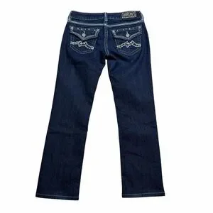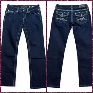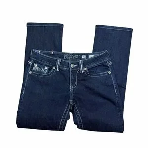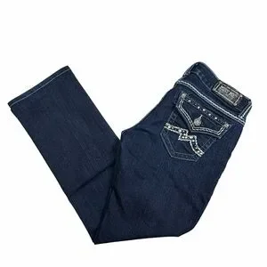 Miss Me Dark Wash Low Rise Studded Embroidered Easy Straight Jeans - Size 27