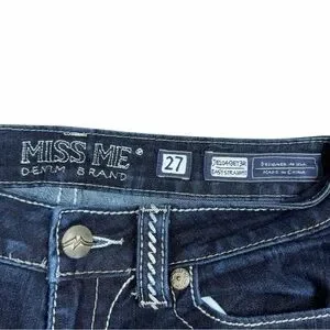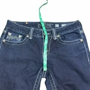 Miss Me Dark Wash Low Rise Studded Embroidered Easy Straight Jeans JE1049ET3R - Size 27. Excellent condition! Measurements are shown in the 11th - 14th photos.