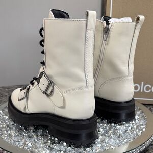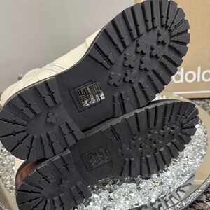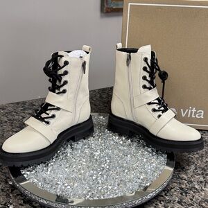 Dolce Vita Robson off White Leather Lace-Up black Lug Boots NEW 6