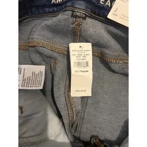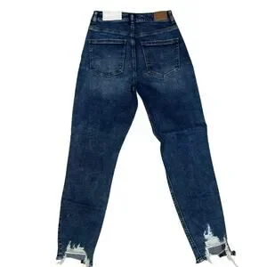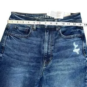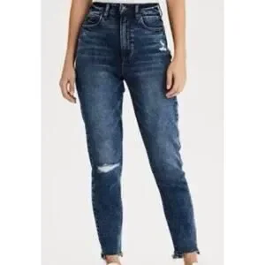 American Eagle highest rise mom denim dark wash stretch distressed jeans 2 NEW