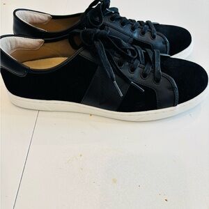 Sleek black sneakers with white soles. Comfortable and stylish. Perfect for everyday wear. Size 10.5. Men’s suede lace-up sneakers, featuring black suede & faux -leather panels along with supportive technology.