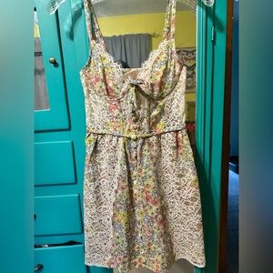 Super super cute brand new with tags for love and lemons dress. Cute floral design with lace panels and sheer lace panels on the waist. Has underwire and adjustable bra closure in the back and is double lined so you wouldn’t need to worry about it being see-through. For reference I am a 32B and the bra top was just a little too big. This would probably fit better on a 32C or a 34B