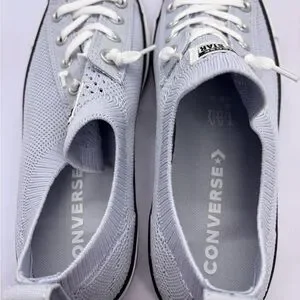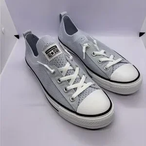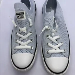 Breathable knit low-top sneakers by Converse. Lace-up design with rubber All Star heel patch. Subtle black trim along the sole. Lightweight and flexible knit upper.