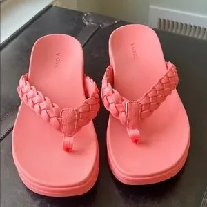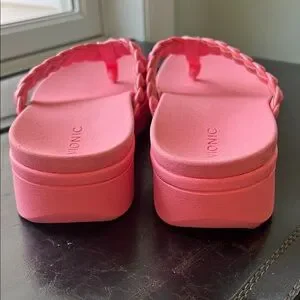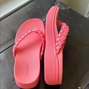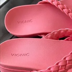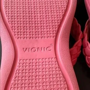 Chic Vionic sandals with braided straps. Eye-catching pink hue.
