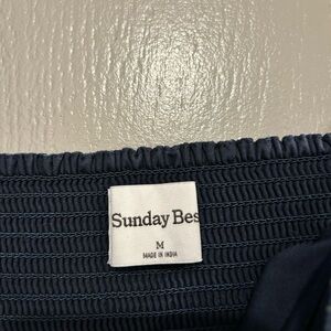 Charming navy blue dress with spaghetti straps. Perfect for casual outings.