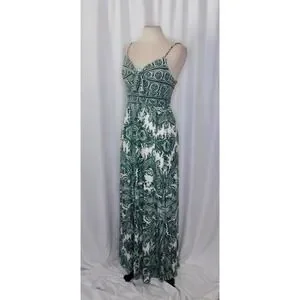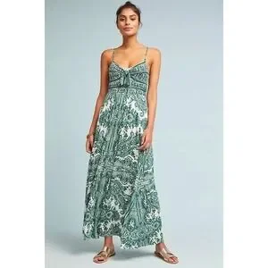 Anthropologie MOULINETTE SOEURS Brisbane Green Paisley Maxi Dress Knit Medium