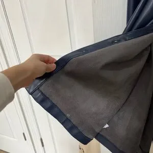 Ann Taylor Navy Faux-Leather Button-Front Midi Dress with Tie Waist
