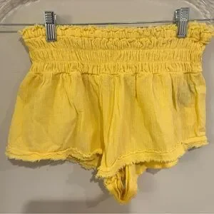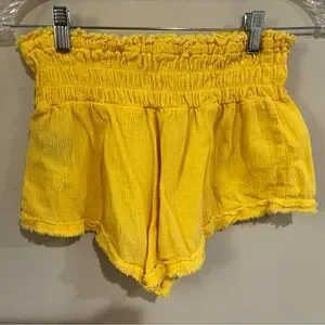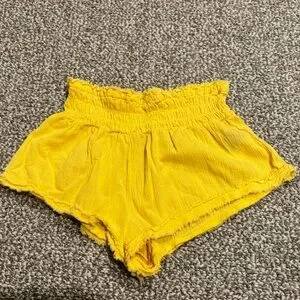 Bright yellow shorts with a ruffled waistband. Lightweight and stylish. Perfect for summer.