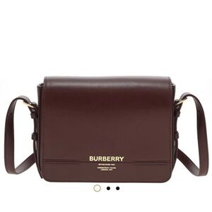 Burberry Oxblood Leather Small Grace Crossbody Bag. The Grace Smooth leather bag with a logo graphic on the front, goldtone hardware, foldover with magnetic closure, two inside slip pockets.