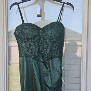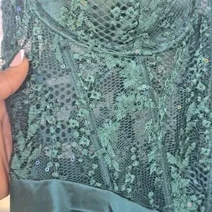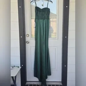 B Darlin Juniors' Corset Formal Lace Satin Gown Sz 13/14 (Women Sz 10) Green