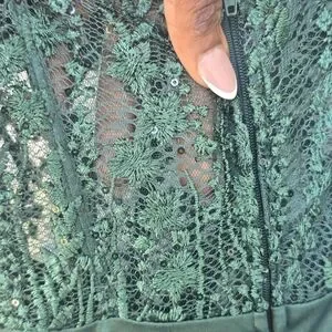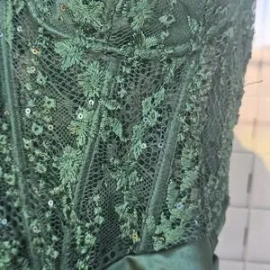 Turn heads with this stunning green lace evening gown. Perfect for special occasions, this dress combines elegance and style.