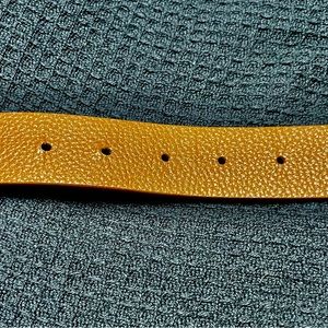 Elegant reversible brown belt with a distinctive gold buckle. Perfect for adding a touch of sophistication.