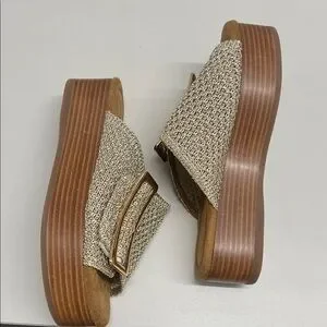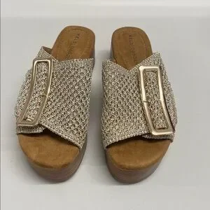Elegant gold mules with a stylish buckle. Perfect for casual outings.