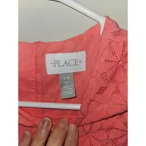 The Childrens Place Girls Coral Pink Floral Lace Shift Dress Short Sleeve 7/8