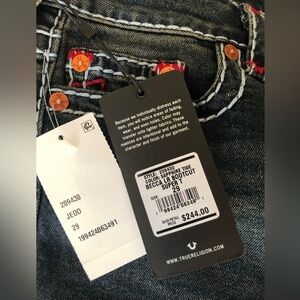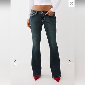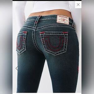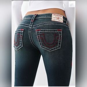 True Religion Dark Indigo Bootcut Jeans with Red Stitching