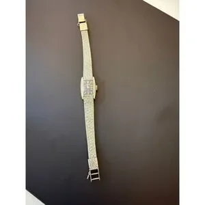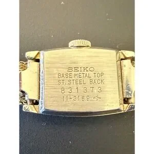 Vintage Seiko ladies wristwatch wind up mechanical with classic rectangular case and mesh bracelet.