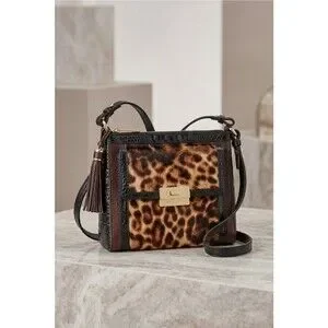 Brahmin Genuine Leather Calf Hair Leopard Print Crossbody Bag croc embossed