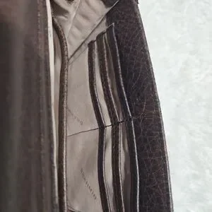 This sophisticated piece features a striking combination of genuine leopard-print calf hair and the brands signature croc-embossed leather. The rich brown and black tones make it a versatile accessory that transitions perfectly from day to night.