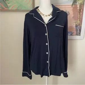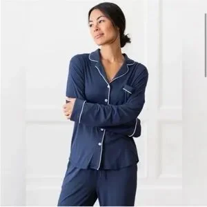 Cozy Earth Pajama Top & Pants Matching Two Piece Set in Navy XS