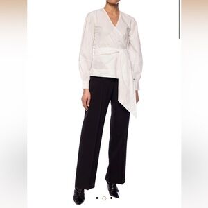 NWT GANNI Bright White Poplin Kimono-Style Cotton Wrap Blouse Shirt Top EU 34/XS
