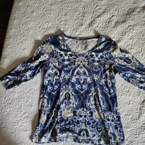 Classic Chico's Top V-Neck, 3/4 length sleeve. Vibrant colors. Size 1