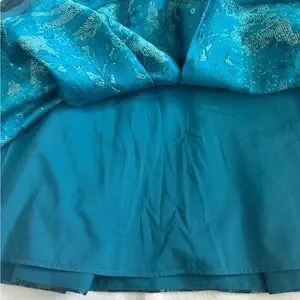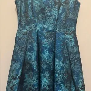 Maggy London Teal and Floral Brocade Fit-and-Flare Dress