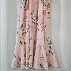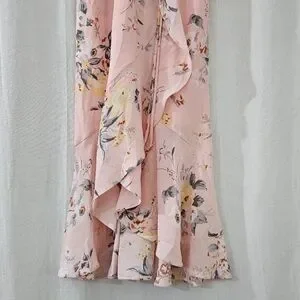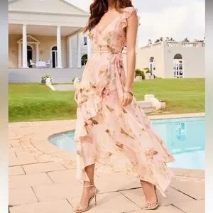 Socialite V-Neck Ruffle Midi Dress in Pink Floral Print