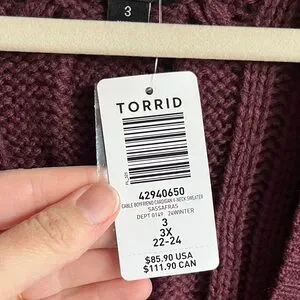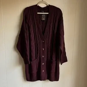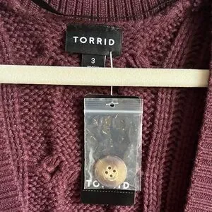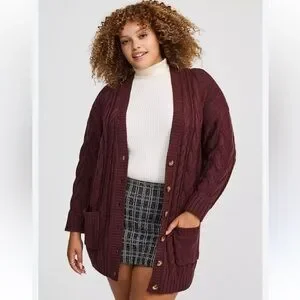 NWT Torrid Burgundy Purple Cable Knit Longline Boyfriend V-Neck Cardigan Sz 3