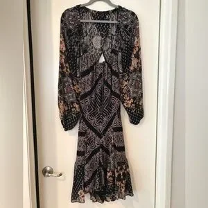 NWT Free People Seven Wonders Black and Multicolored Mini Dress Size L