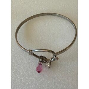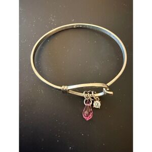 Carolina Herrera 925 Sterling Silver Charm Bangle Bracelet Pink Crystal Drop