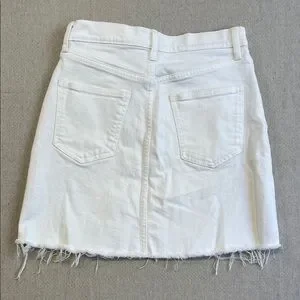 Gap white denim skirt in like new condition featuring a trendy frayed hem. Classic denim style that’s easy to dress up or down. Perfect for summer outfits, casual days, or pairing with tees, tanks, and sandals. A versatile wardrobe staple with a clean, modern look.