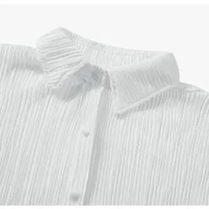 Features: Long sleeve button-down oversized shirt with turn down collar and flared sleeves. Shorts are fully lined.