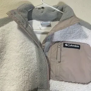 Columbia Womens Sherpa 1/4 Snap Crop Fleece Pullover Tan White Soft Warm Small
