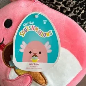 Squishmallows Pink and White Axolotl with Ice Cream.7”