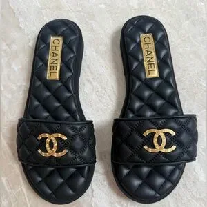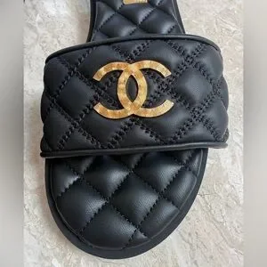 Chanel slides, CC sandals, quilted sandals, designer flats, luxury sandals
