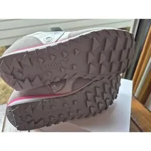 The NIB Saucony Kids Jazz Double Hook Loop Sneaker Shoes in Big Kid US size 5 with leather upper material are designed for both activewear and casual occasions. With a round toe shape, flat heel, and rubber outsole, these sneakers offer cushioned comfort and breathability. The adjustable hook & loop closure and moderate cushioning level make them ideal for year-round wear in various seasons. The stylish sneaker features a solid gray color with logo accents, perfect for kids who love sports or hipster style. Made by the trusted brand Saucony, these shoes are a versatile choice for active kids.