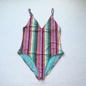 Gibson Latimer Multicolor Rainbow and gold striped One-Piece Swimsuit size Large