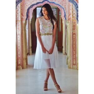 Anthropologie Leifsdottir Shadow Stripe Midi Skirt in Whte Size 6