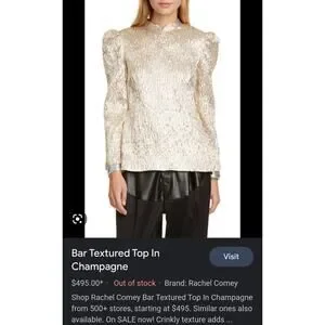 Rachel Comey Blouse Bar Textured Top Champagne 4 Metallic Crinkle Puff Sleeve
