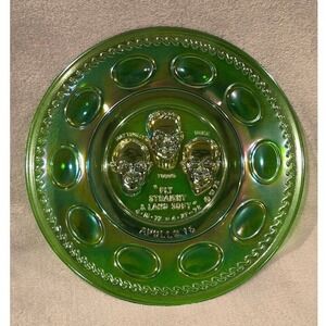 Vintage Green Glass Apollo 11 Plate Moon Landing Souvenir Decorative