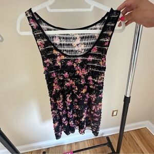 This Bohemian Mini dress is in a floral print with layered tiers of danity sheer chiffon ruffles which add feminine charm.