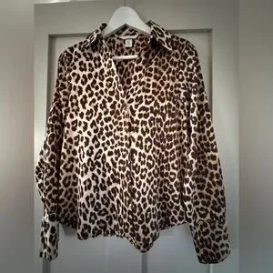 H&M Leopard 🐆 button down silk style blouse - XS
