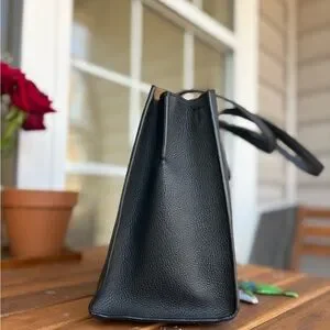 Timeless and sophisticated, the Coach Charlie Carryall is crafted from polished pebble leather in classic black and finished with elegant gold-tone hardware. The structured silhouette keeps its shape beautifully while remaining lightweight and comfortable for everyday wear.