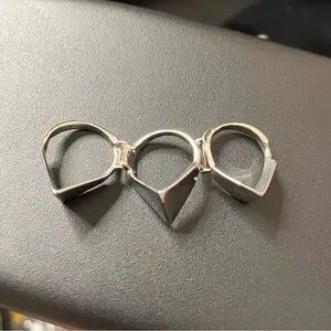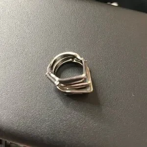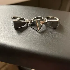 This elegant silver geometric ring adds a modern touch to any outfit. Perfect for any occasion.
