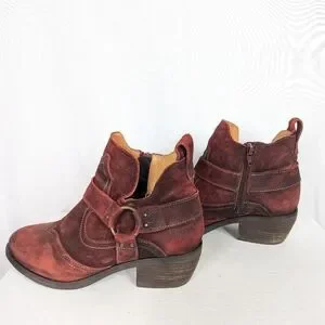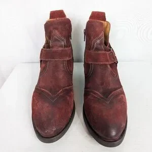 Toas Howdy Red Garnet Rugged Suede Leather Ankle Boots - Size 9-9.5